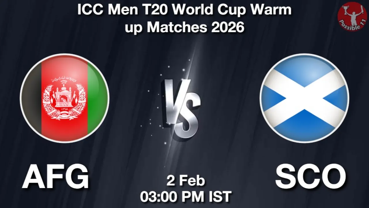 AFG vs SCO Match Prediction, ICC Men T20 World Cup Warm up Matches 2026, Afghanistan vs Scotland Match Preview, Probable Playing 11, Match winning Tips, Live Match Score, Pitch Report, Injury & Updates.