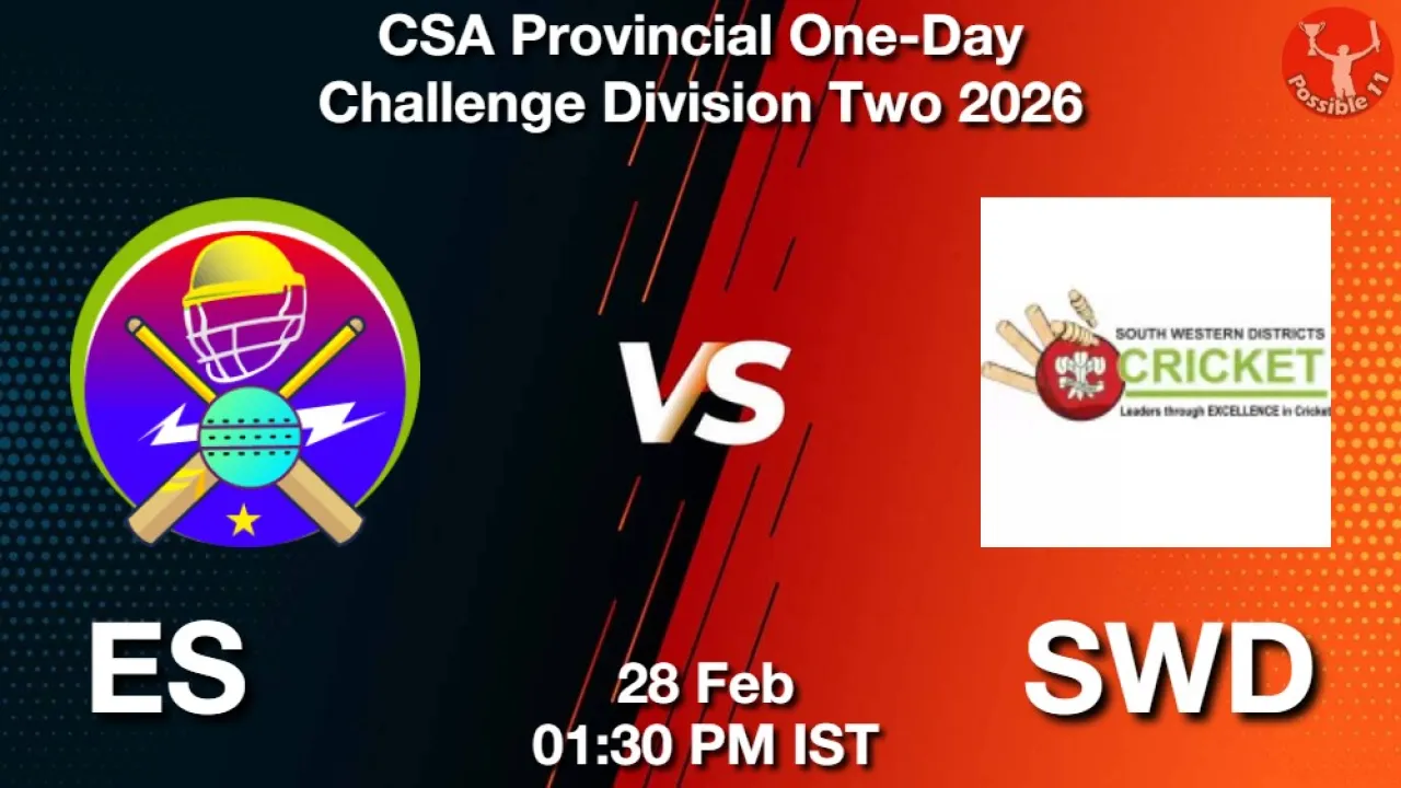 ES vs SWD Match Preview: CSA Provincial One-Day Challenge Division Two 2026 will see Eastern Storms facing off against SWD on Saturday, 28 February 2026 at 01:30 PM IST.