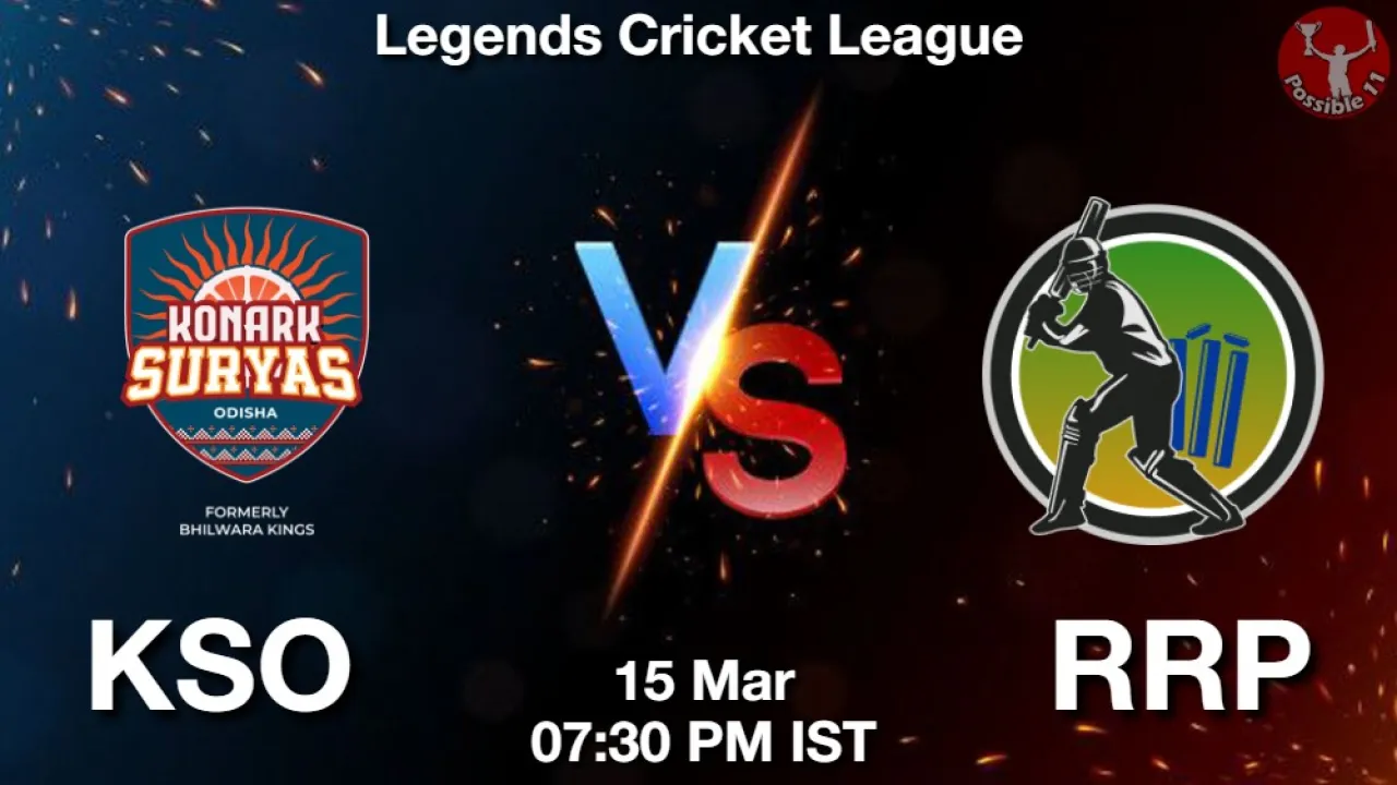 KSO vs RRP Match Preview: Konark Suryas Odisha is set to take on Royal Riders Punjab in Legends Cricket League on Sunday, 15 March 2026 at 07:30 PM IST.