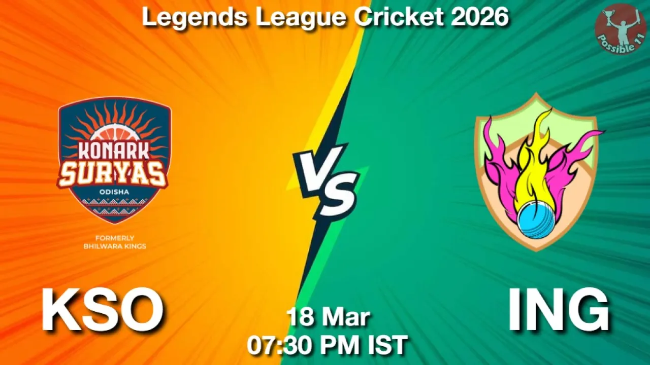 KSO vs ING Match Preview: Konark Suryas Odisha is set to take on India Tigers in Legends League Cricket 2026 on Wednesday, 18 March 2026 at 07:30 PM IST.
