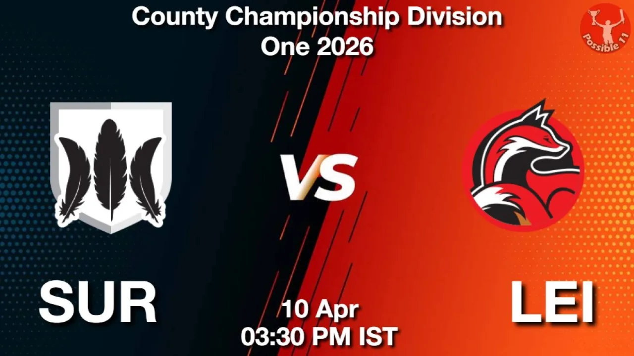 A-2, Dream11 Cricket team prediction for SUR vs LEI, Get expert fantasy tips, injury updates, small league safe teams, and grand league risky players from the Possible11 App.