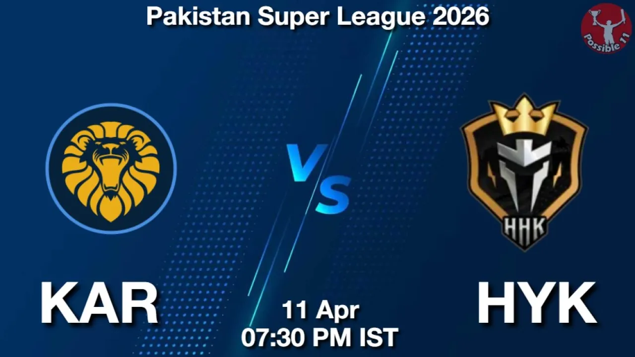 A-2, Dream11 Cricket team prediction for KAR vs HYK, Get expert fantasy tips, injury updates, small league safe teams, and grand league risky players from the Possible11 App.