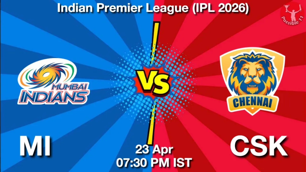 A-1, MI vs CSK Dream11 Prediction, Mumbai Indians is set to take on Chennai Super Kings at 2026-04-23 19:30:00 IST