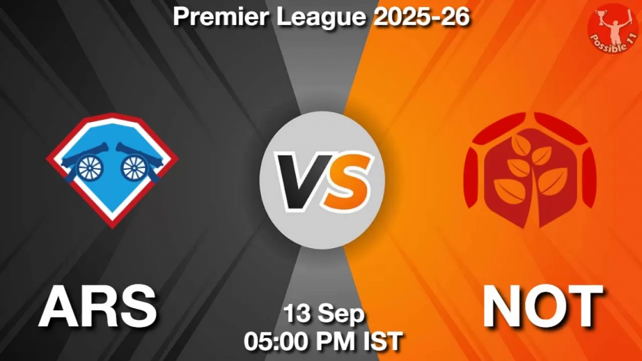 ARS vs NOT Match Previews, Probable Playing 11, Football Match Live Score and Pitch Report
