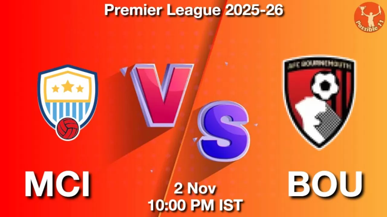 MCI vs BOU Match Prediction, Premier League 2025-26, Manchester City vs AFC Bournemouth Match Preview, Probable Playing 11, Match winning Tips, Live Match Score, Pitch Report, Injury & Updates.