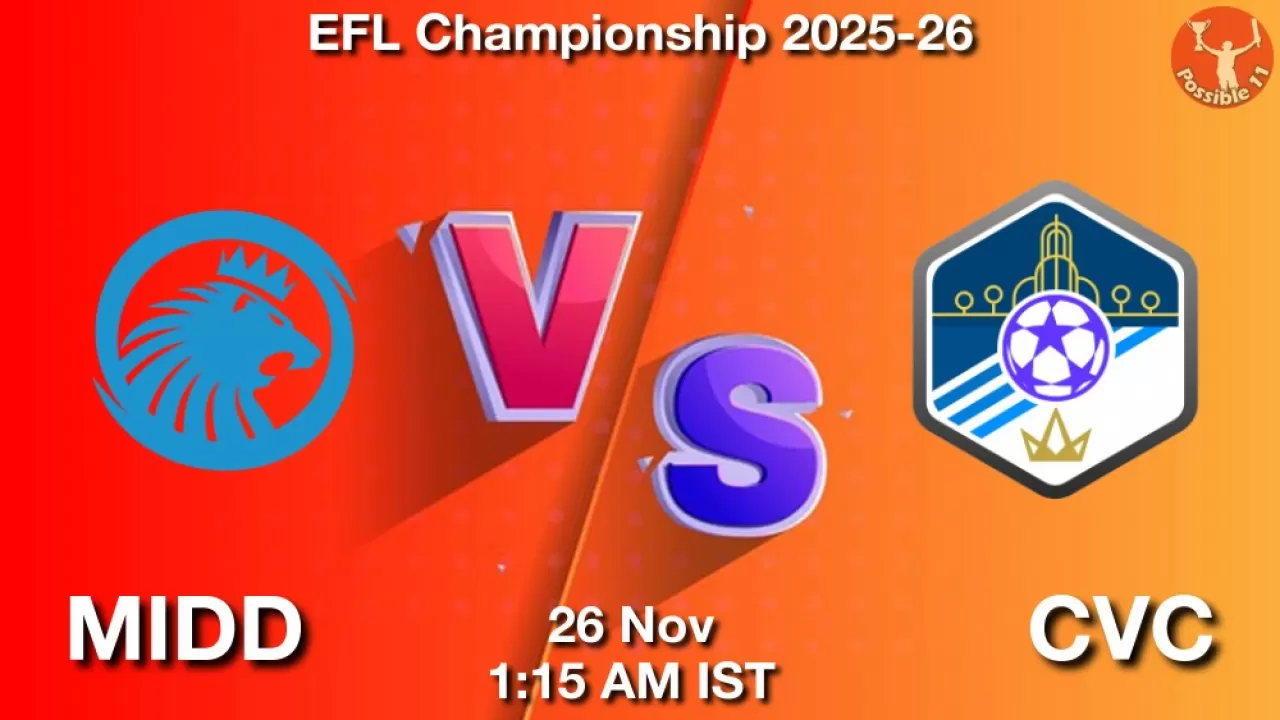 MIDD vs CVC Match Preview: The EFL Championship 2025-26 match between Middlesbrough vs Coventry City will be played on Wednesday, 26 November 2025 at 01:15 AM IST.