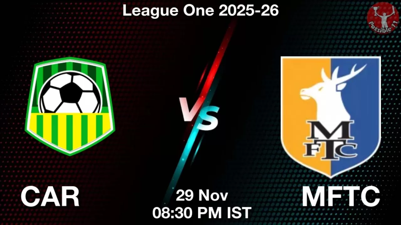 A-1, CAR vs MFTC Dream11 Prediction, Cardiff City is set to take on Mansfield Town F.C. at 2025-11-29 20:30:00 IST
