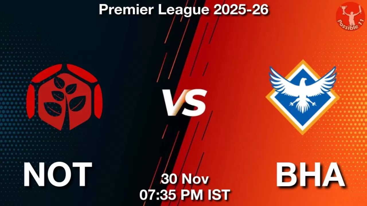 A-2, Dream11 Football team prediction for NOT vs BHA, Get expert fantasy tips, injury updates, small league safe teams, and grand league risky players from the Possible11 App.