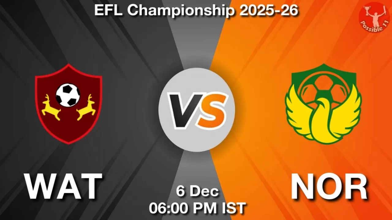 WAT vs NOR Match Prediction, EFL Championship 2025-26, Watford vs Norwich City Match Preview, Probable Playing 11, Match winning Tips, Live Match Score, Pitch Report, Injury & Updates.