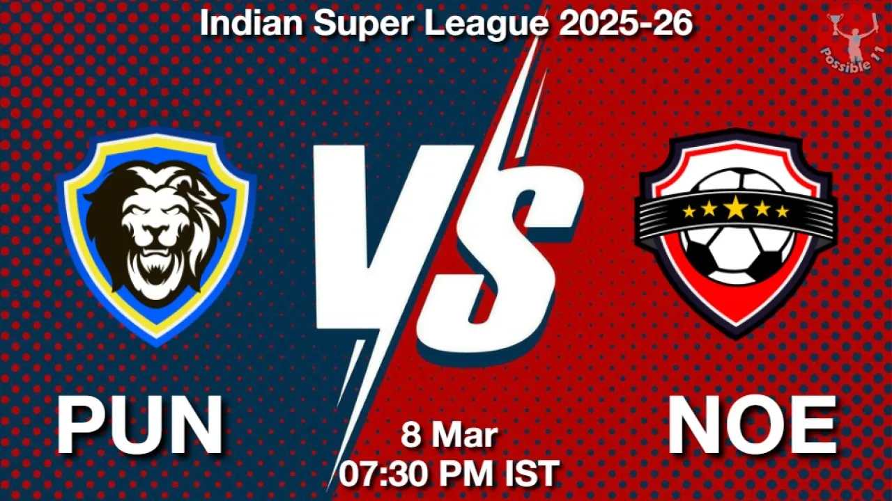 PUN vs NOE Match Preview: The Indian Super League 2025-26 match between Punjab FC vs North East United FC will be played on Sunday, 08 March 2026 at 07:30 PM IST.