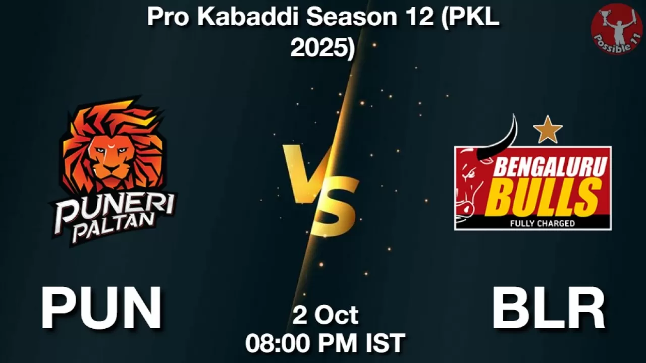 PUN vs BLR Match Prediction, Pro Kabaddi Season 12 (PKL 2025), Puneri Paltan vs Bengaluru Bulls Match Preview, Probable Playing 11, Match winning Tips, Live Match Score, Pitch Report, Injury & Updates.