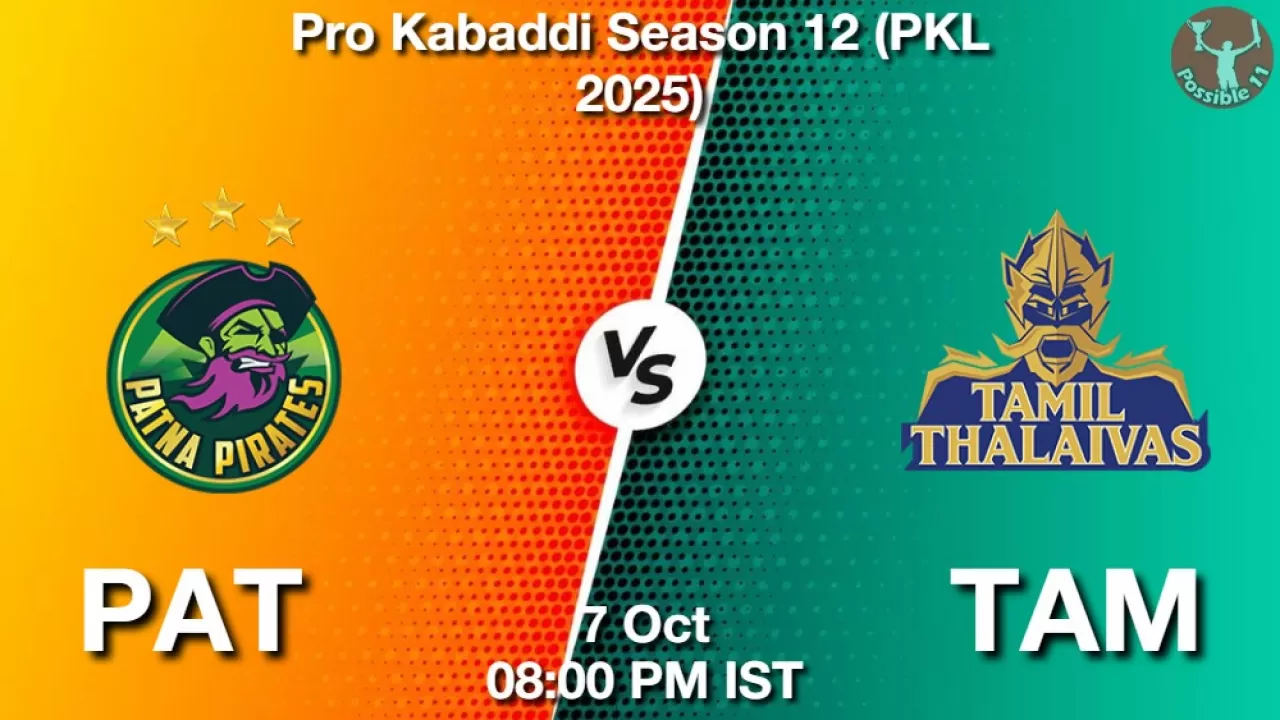 PAT vs TAM Match Prediction, Pro Kabaddi Season 12 (PKL 2025), Patna Pirates vs Tamil Thalaivas Match Preview, Probable Playing 11, Match winning Tips, Live Match Score, Pitch Report, Injury & Updates.