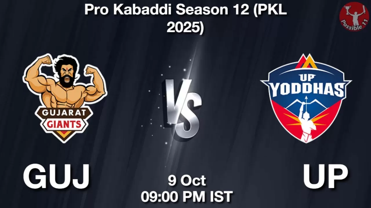 GUJ vs UP Match Prediction, Pro Kabaddi Season 12 (PKL 2025), Gujarat Giants vs UP Yoddha Match Preview, Probable Playing 11, Match winning Tips, Live Match Score, Pitch Report, Injury & Updates.