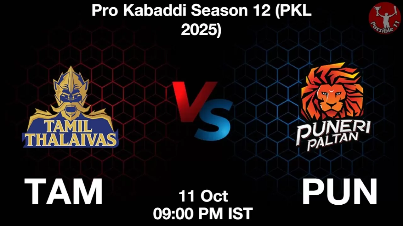TAM vs PUN Match Preview: Tamil Thalaivas will take on Puneri Paltan in Pro Kabaddi Season 12 (PKL 2025) on Saturday, 11 October 2025 at 09:00 PM IST.