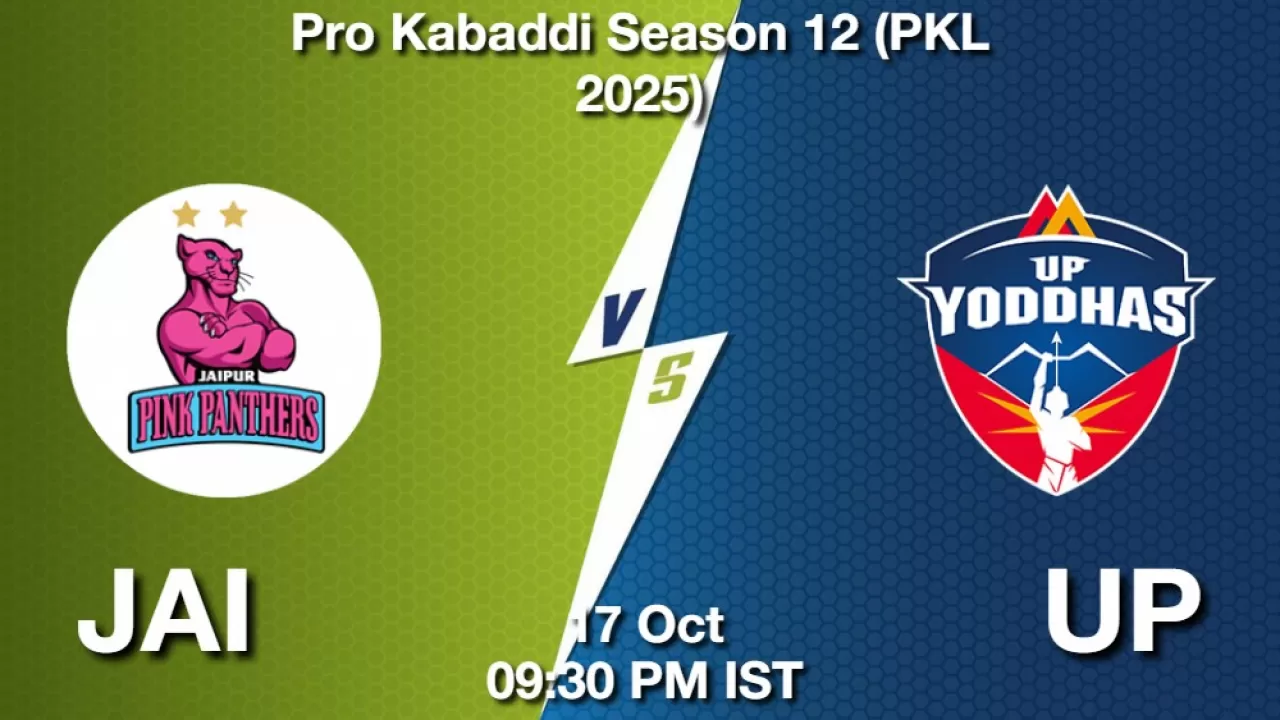 JAI vs UP Match Preview: Jaipur Pink Panthers is set to take on UP Yoddha in Pro Kabaddi Season 12 (PKL 2025) on Friday, 17 October 2025 at 09:30 PM IST.
