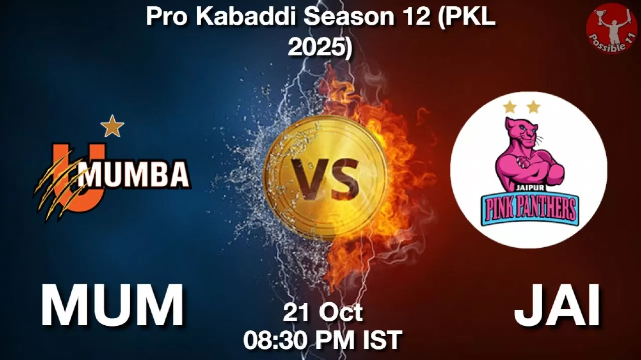 MUM vs JAI Match Prediction, Pro Kabaddi Season 12 (PKL 2025), U Mumba vs Jaipur Pink Panthers Match Preview, Probable Playing 11, Match winning Tips, Live Match Score, Pitch Report, Injury & Updates.