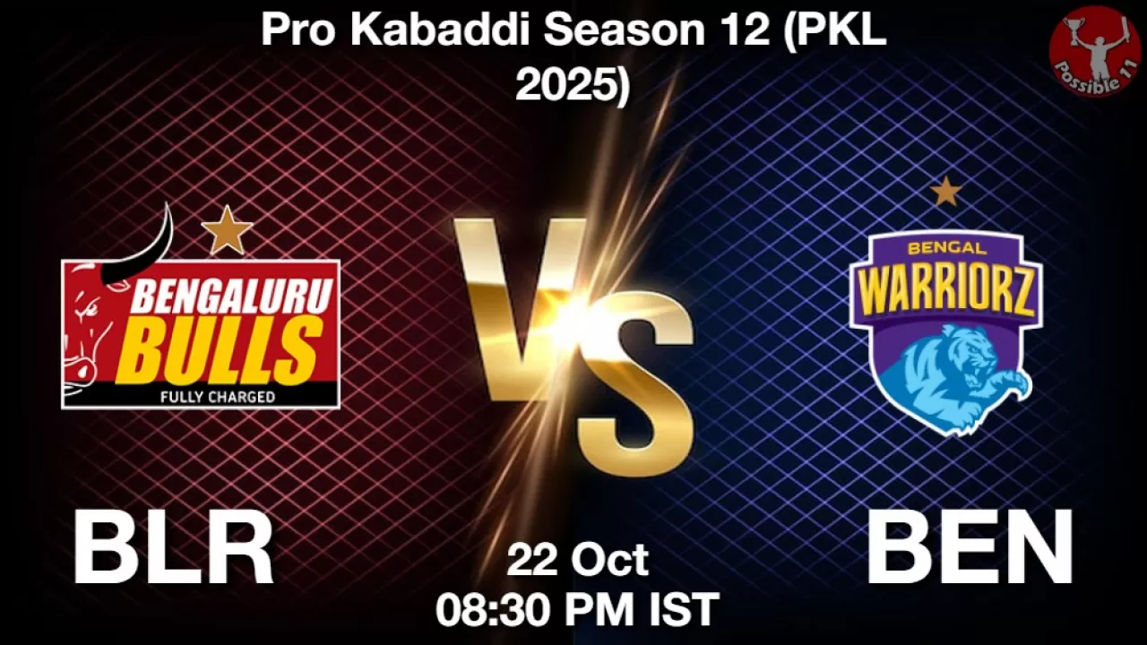 BLR vs BEN Match Prediction, Pro Kabaddi Season 12 (PKL 2025), Bengaluru Bulls vs Bengal Warriors Match Preview, Probable Playing 11, Match winning Tips, Live Match Score, Pitch Report, Injury & Updates.