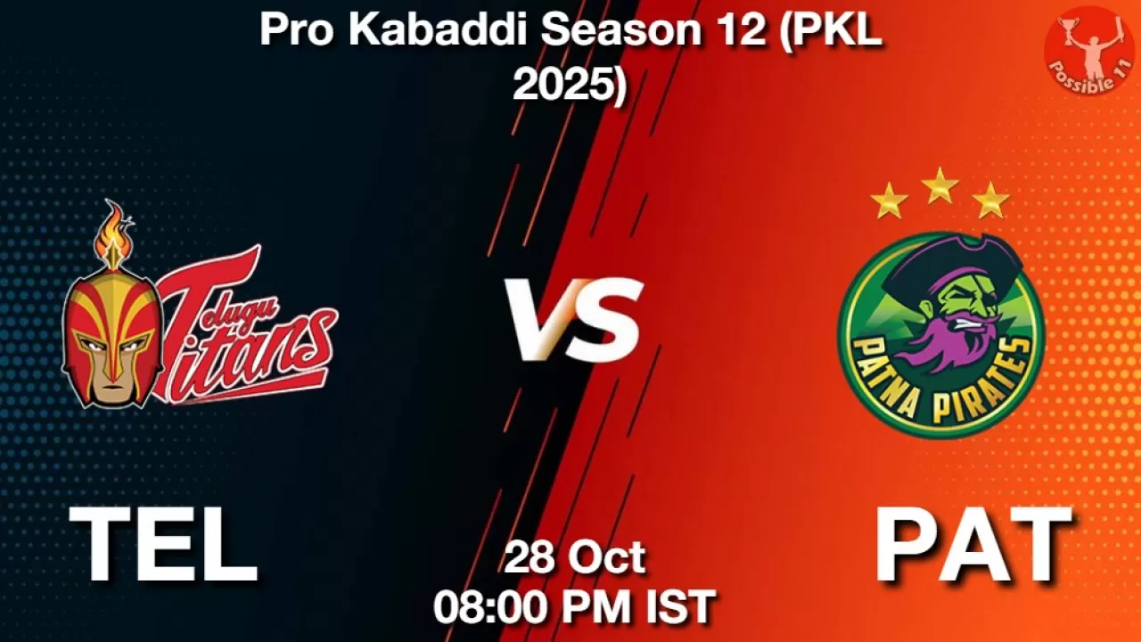 TEL vs PAT Match Prediction, Pro Kabaddi Season 12 (PKL 2025), Telugu Titans vs Patna Pirates Match Preview, Probable Playing 11, Match winning Tips, Live Match Score, Pitch Report, Injury & Updates.