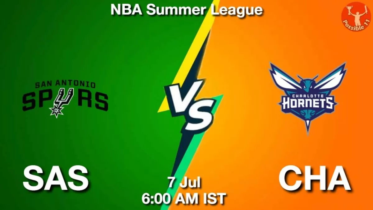 San Antonio Spurs vs Charlotte Hornets match prediction, SAS vs CHA dream11 match prediction, SAS vs CHA fantsy prediction, SAS vs CHA fantasy tips, NBA Summer League League match prediction, NBA Summer League League dream11 prediction, NBA Summer League series, SAS vs CHA dream11 Tips and Trics, SAS vs CHA Dream11 Winning team, SAS vs CHA dream11 grand league winning team, SAS vs CHA dream11 small league winning team, SAS vs CHA dream11 SL team, SAS vs CHA dream11 GL team, SAS vs CHA todays Dream11 Winning Team, SAS vs CHA match updates, List of NBA matches on Sunday 7th July 2024,