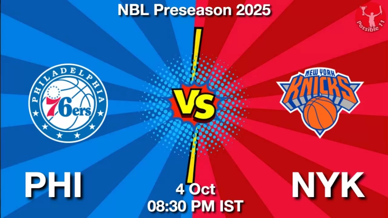 PHI vs NYK Match Prediction, NBL Preseason 2025, Philadelphia 76ers vs New York Knicks Match Preview, Probable Playing 11, Match winning Tips, Live Match Score, Pitch Report, Injury & Updates.