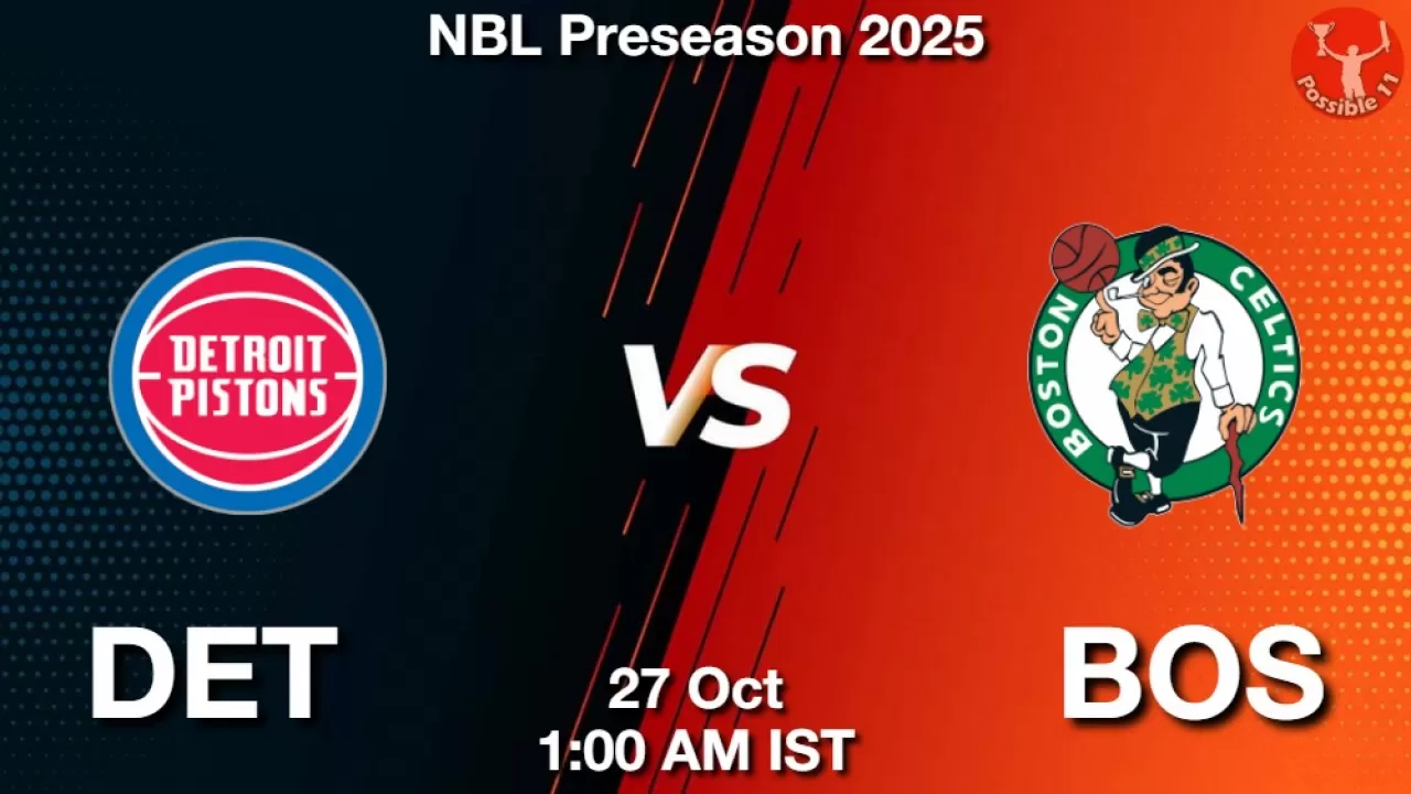 DET vs BOS Match Prediction, NBL Preseason 2025, Detroit Pistons vs Boston Celtics Match Preview, Probable Playing 11, Match winning Tips, Live Match Score, Pitch Report, Injury & Updates.