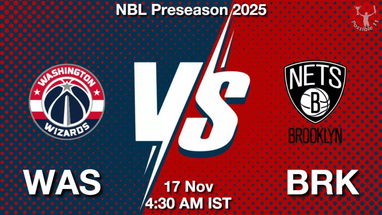 WAS vs BRK Match Preview: Washington Wizards will lock horns against Brooklyn Nets in NBL Preseason 2025 on Monday, 17 November 2025 at 04:30 AM IST.