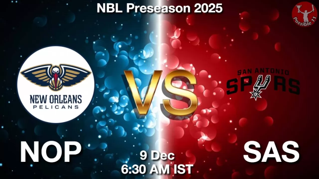 NOP vs SAS Match Prediction, NBL Preseason 2025, New Orleans Pelicans vs San Antonio Spurs Match Preview, Probable Playing 11, Match winning Tips, Live Match Score, Pitch Report, Injury & Updates.