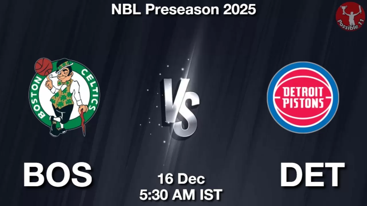 BOS vs DET Match Prediction, NBL Preseason 2025, Boston Celtics vs Detroit Pistons Match Preview, Probable Playing 11, Match winning Tips, Live Match Score, Pitch Report, Injury & Updates.