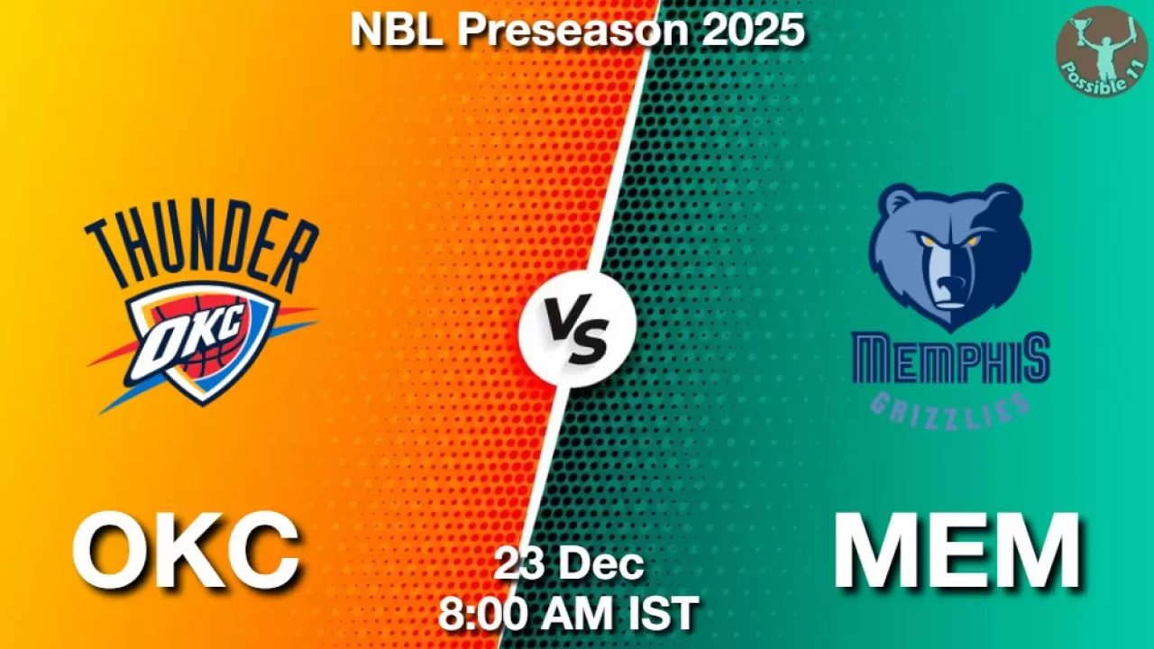 OKC vs MEM Match Preview: OKC will lock horns against Memphis Grizzlies in NBL Preseason 2025 on Tuesday, 23 December 2025 at 08:00 AM IST.