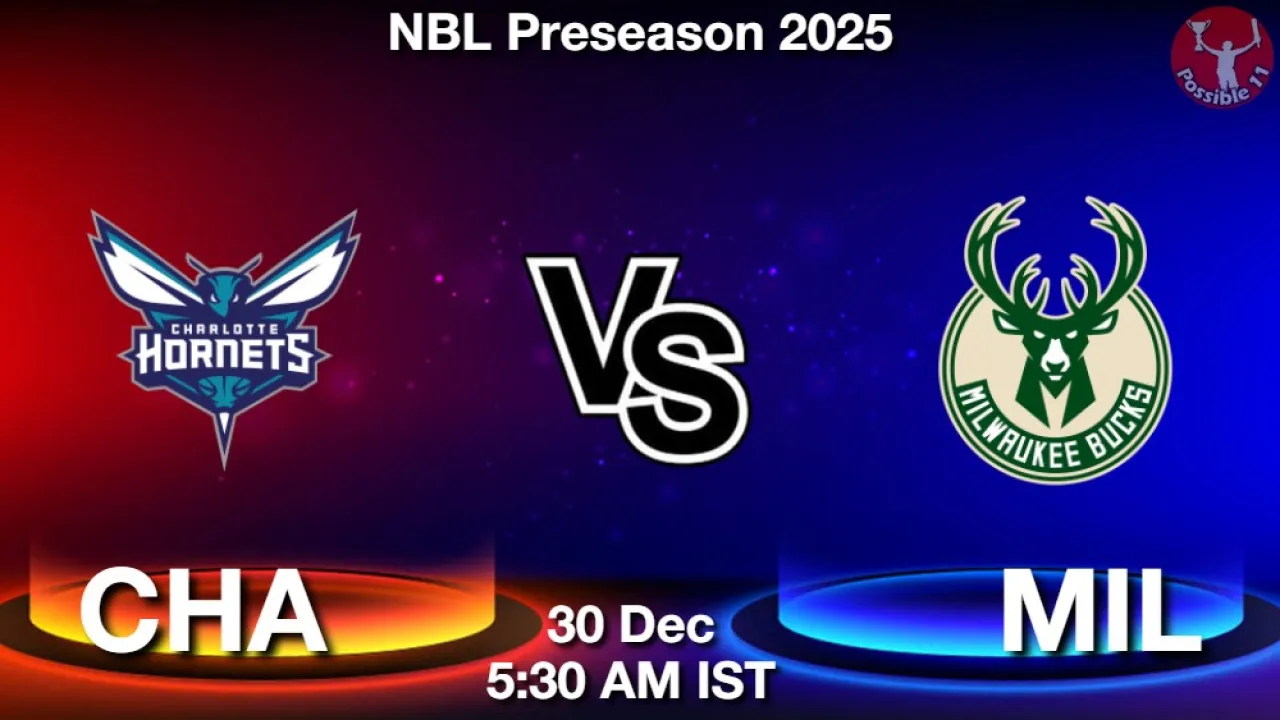 CHA vs MIL Match Prediction, NBL Preseason 2025, Charlotte Hornets vs Milwaukee Bucks Match Preview, Probable Playing 11, Match winning Tips, Live Match Score, Pitch Report, Injury & Updates.