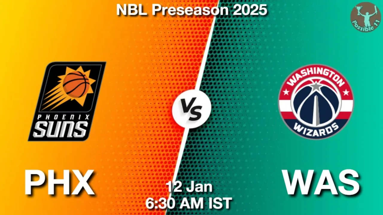 PHX vs WAS Match Preview: Phoenix Suns will lock horns against Washington Wizards in NBL Preseason 2025 on Monday, 12 January 2026 at 06:30 AM IST.