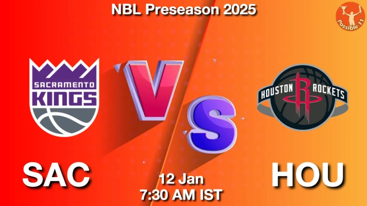 SAC vs HOU Match Preview: Sacramento Kings will take on Houston Rockets in NBL Preseason 2025 on Monday, 12 January 2026 at 07:30 AM IST.