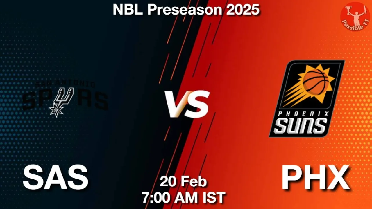 SAS vs PHX Match Preview: NBL Preseason 2025 will see San Antonio Spurs facing off against Phoenix Suns on Friday, 20 February 2026 at 07:00 AM IST.