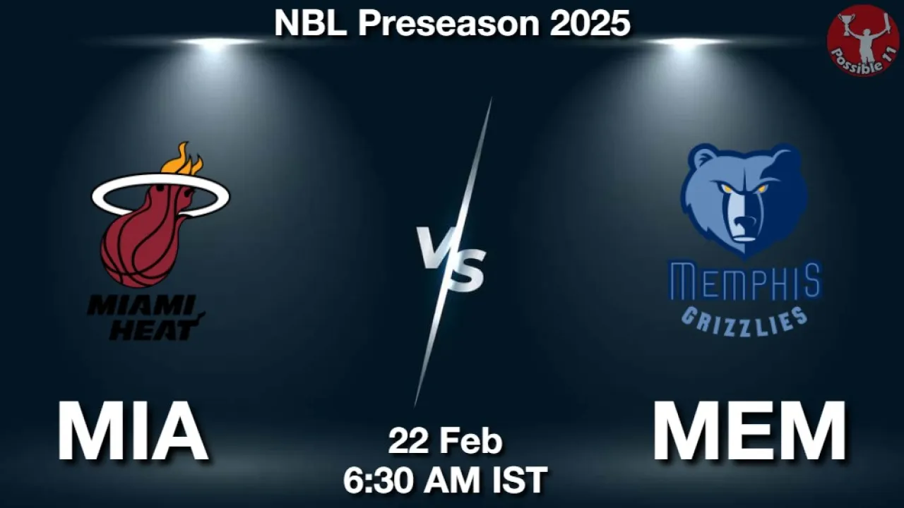 MIA vs MEM Match Preview: Miami Heat will lock horns against Memphis Grizzlies in NBL Preseason 2025 on Sunday, 22 February 2026 at 06:30 AM IST.