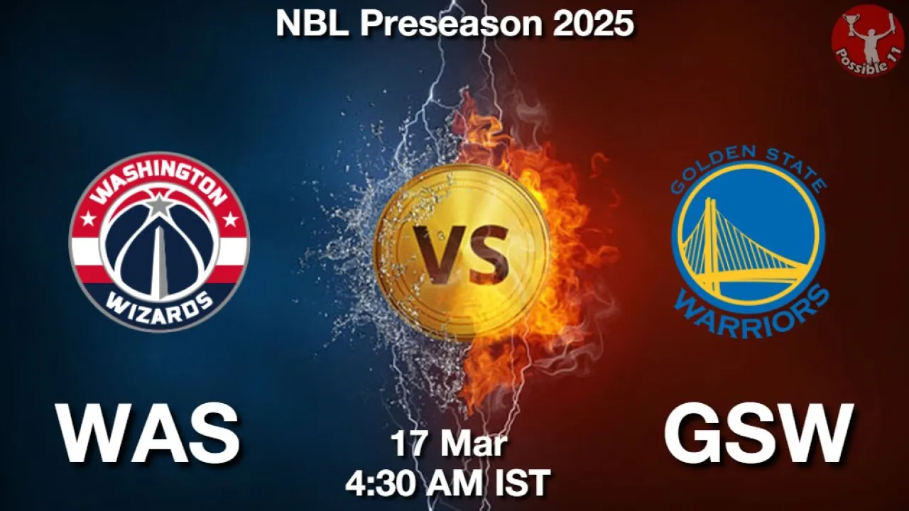 WAS vs GSW Match Preview: NBL Preseason 2025 will see Washington Wizards facing off against GSW on Tuesday, 17 March 2026 at 04:30 AM IST.