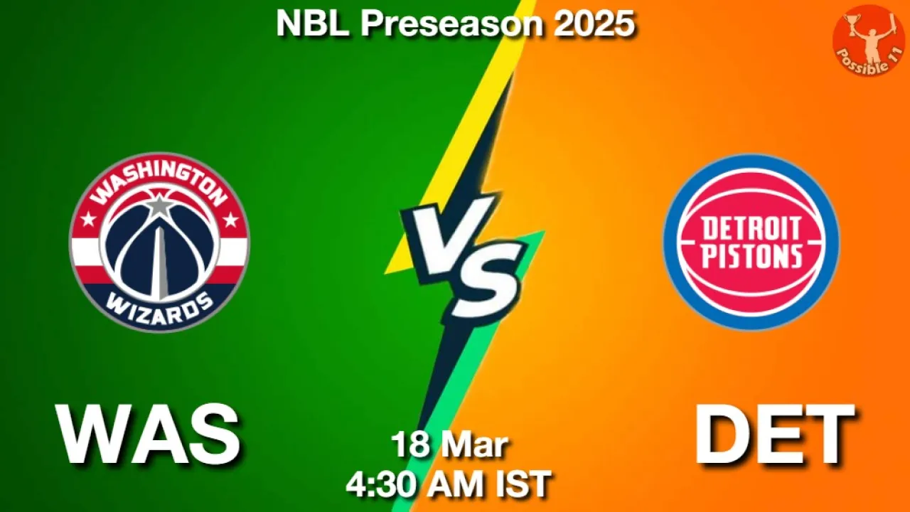 WAS vs DET Match Preview: NBL Preseason 2025 will see Washington Wizards facing off against Detroit Pistons on Wednesday, 18 March 2026 at 04:30 AM IST.