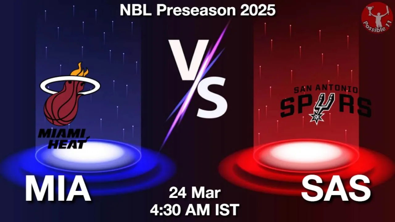 MIA vs SAS Match Preview: Miami Heat will take on San Antonio Spurs in NBL Preseason 2025 on Tuesday, 24 March 2026 at 04:30 AM IST.