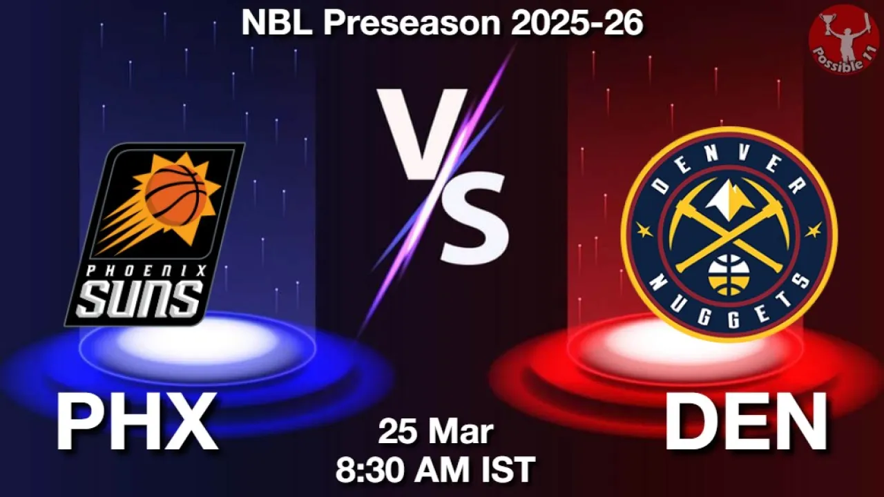 PHX vs DEN Match Preview: Phoenix Suns will take on Denver Nuggets in NBL Preseason 2025-26 on Wednesday, 25 March 2026 at 08:30 AM IST.